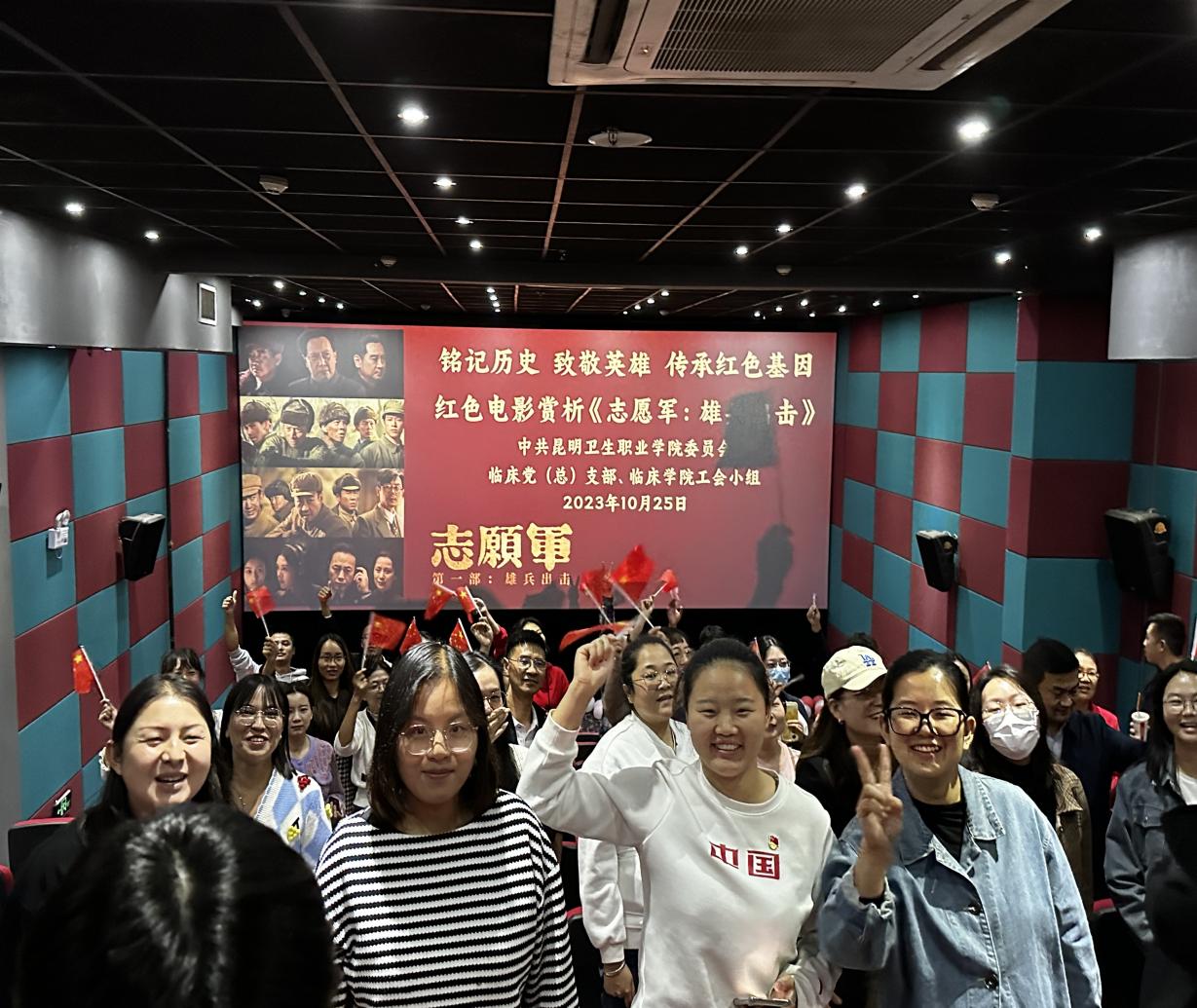 为纪念中国人民志愿军抗美援朝73周年,深切缅怀革命先烈,进一步加强爱国主义教育,厚植家国情怀,深入感受中国人民志愿军的英勇事迹,领悟伟大的抗美援朝精神,进一步传承红色文化精神,坚定理想信念,加强党性教育,充分发挥党支部的战斗堡垒作用和教师党员的先锋模范作用。2023年10月25日下午,临床学院总支部组织全体党员、教师在晋宁晶淼鑫影院开展爱国主义教育主题党日活动。