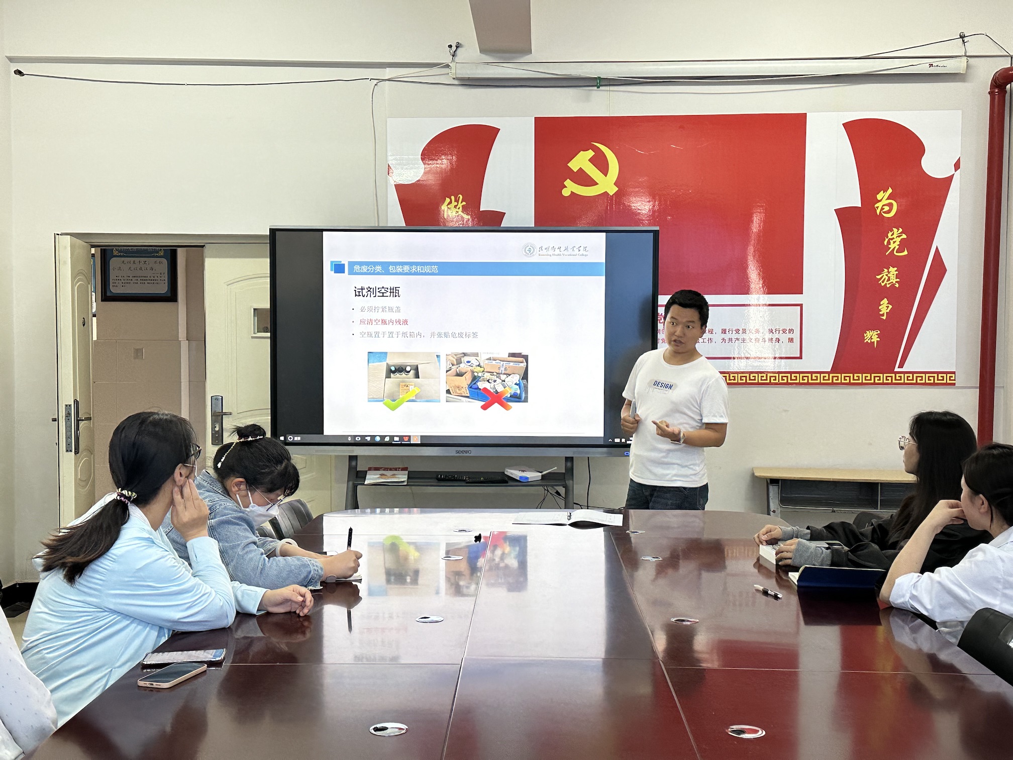 为了进一步加强和规范实验室安全工作,有效防范和消除安全隐患,最大限度减少实验室安全事故,保障校园安全、师生生命安全和学院财产安全,2023年6月9日由临床学院组织开展“临床学院实验室安全检查与整改工作”,通过实地查看,现场分析后,2023年6月13日针对安全责任体系、管理制度、教育培训、安全准入、条件保障,以及危险化学品等危险源的安全管理的内容进行培训。图1讲解培训课件图2讲解培训课件培训中再三强...