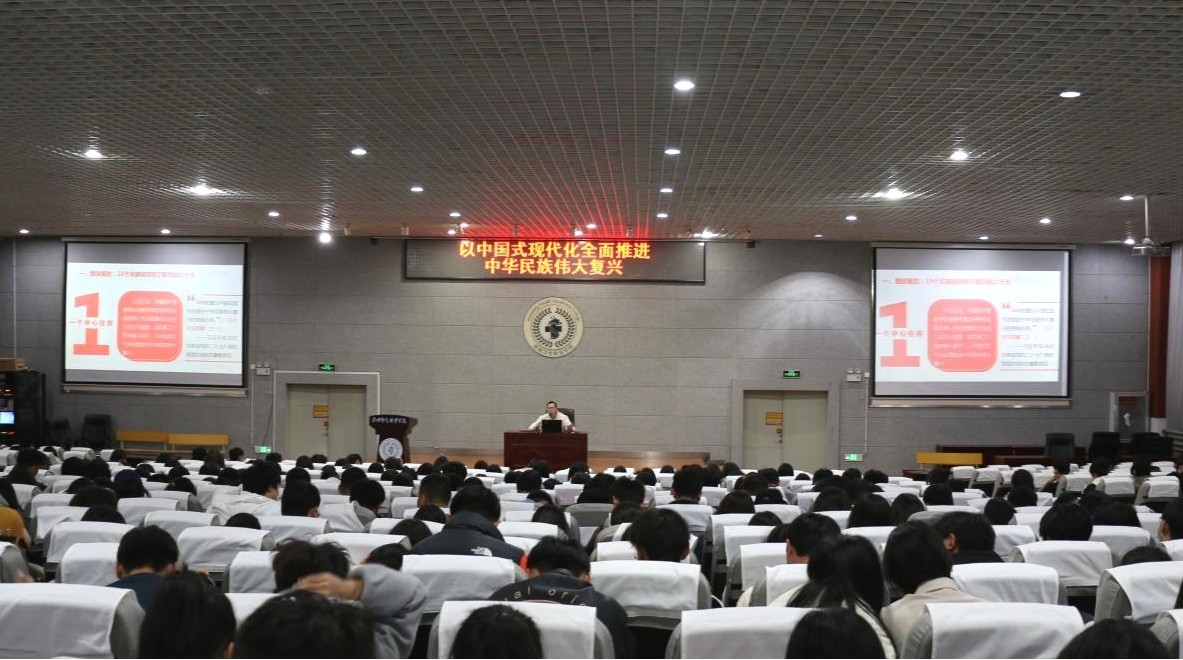 为全面贯彻习近平新时代中国特色社会主义思想,认真落实习近平总书记关于深入学习宣传贯彻党的二十大精神的重要指示精神,用习近平新时代中国特色社会主义思想铸魂育人,厚植青年学生的政治底色。beat365平台官方网站宣讲团成员,青年教师聂元会于12月11日晚在学术报告厅开展主题为“以中国式现代化全面推进中华民族伟大复兴”的理论宣讲。