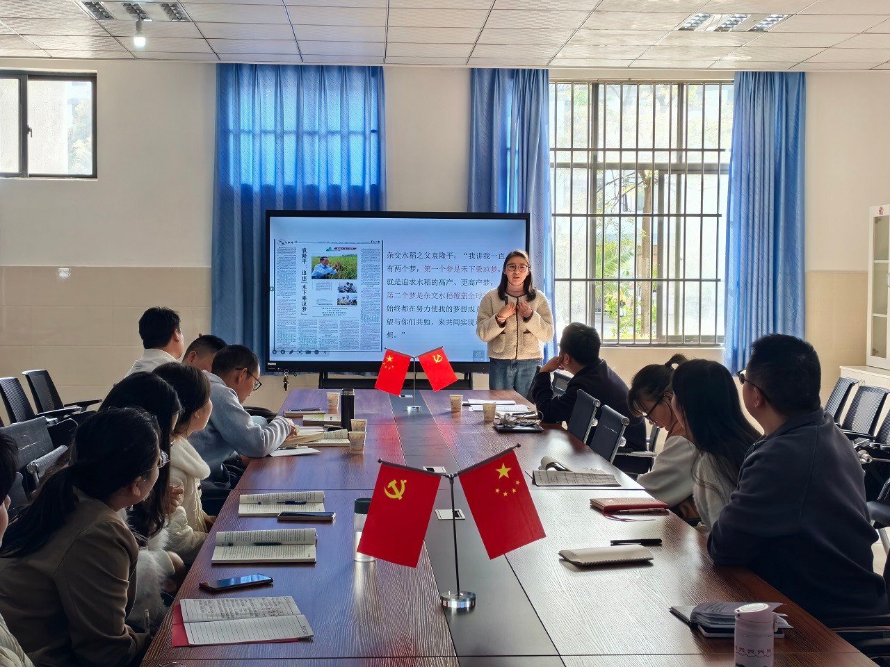 马克思主义学院教师代表着眼于思想政治理论课是立德树人关键课程,围绕学校思想政治理论课建设、马克思主义学院课程改革和建设等方面谈了体会和感想。郑跃林老师谈到,再读习近平总书记在全国思想政治理论课教师座谈会上的讲话,他的内心再次受到了极大的振奋和鼓舞,也再次感受到习近平总书记对思政教师的关心和殷切希望,鼓励在座的思政教师坚定理想信念,理直气壮讲好思政课,结合校情和学情,不断探索创新教学方法,才能切实让思政课成为立德树人的关键课程。李思雨老师表示,思政教学不仅仅是传授知识,更是塑造学生世界观、人生观和价值观的重要工作,思政教学需紧密结合实际,增强教学的针对性和实效性,紧密联系社会现实,引导学生从理论的高度去看待和解决问题,增强学生实践能力和社会责任感。