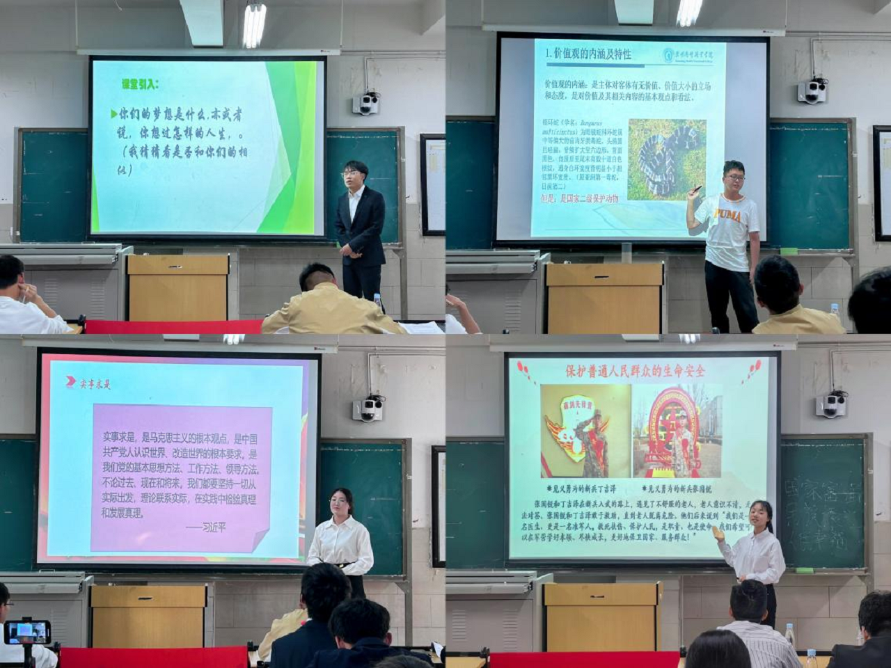 通过初赛的层层筛选,共有12支队伍脱颖而出入围决赛。各参赛团队紧紧围绕“毛泽东思想和中国特色社会主义理论体系概论”“思想道德与法治”“习近平新时代中国特色社会主义思想概论”三门课程中的有关章节或专题,结合时政热点、生活实践开展讲课比赛。