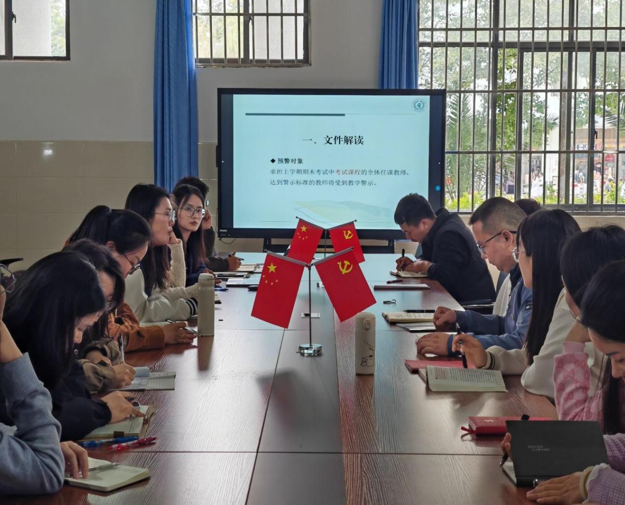 严丽老师领学“教学警示工作的通知”文件