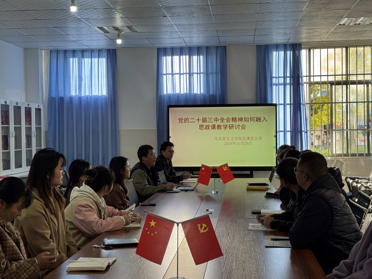 马克思主义学院直属党支部于2024年11月29日召开党的二十届三中全会精神如何融入思政课教学研讨会。本次研讨会旨在深入学习贯彻党的二十届三中全会精神,巩固当前的学习成果和推进下一步的学习任务,聚焦党的二十届三中全会精神融入思政课教学。