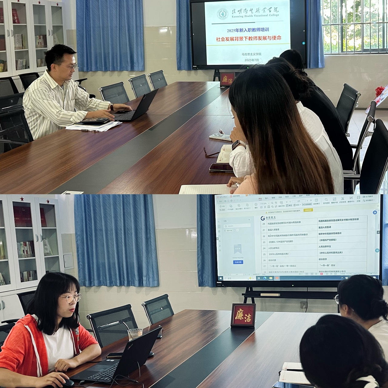 为夯实师资队伍建设根基,助力新入职教师快速成长,马克思主义学院于2025年7月15日——8月26日开展2025年度新入职教师岗前培训。本次培训旨在通过系统化、精准化培养体系,全面提升新教师的思想政治素养、师德修养和教育教学能力,为学校教育高质量发展注入新生力量。