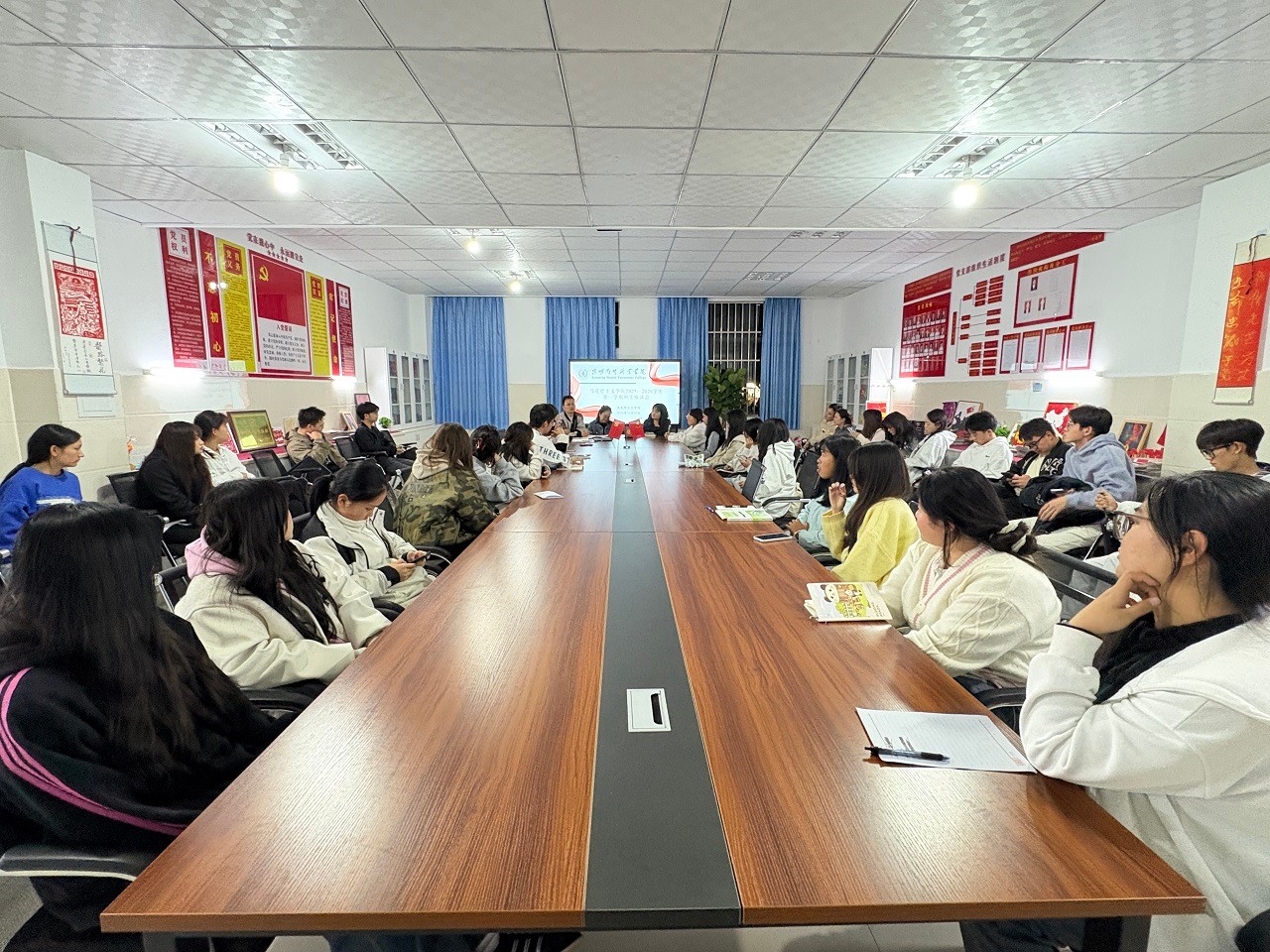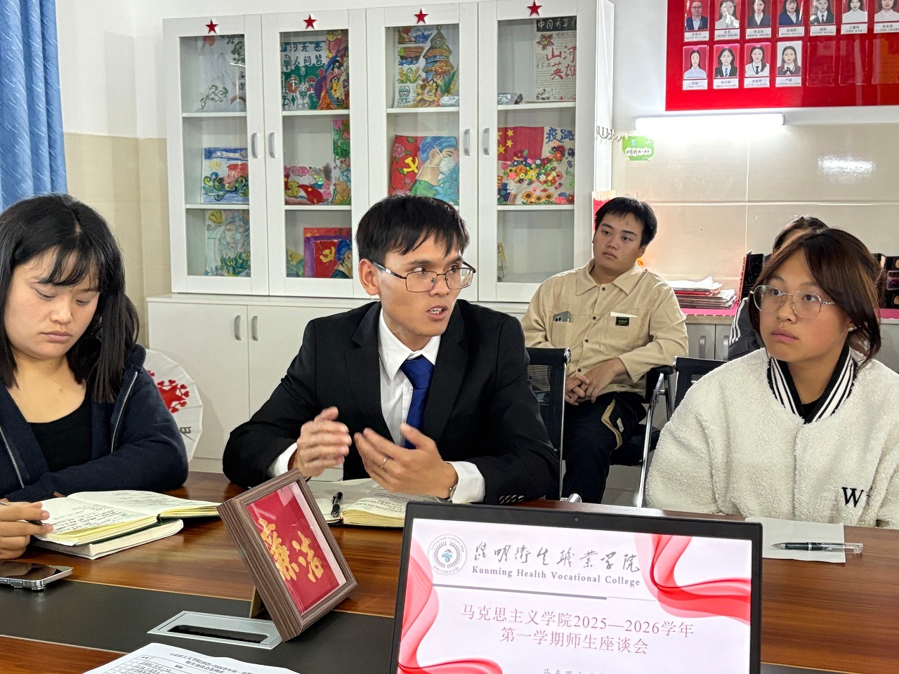 为学习贯彻习近平总书记关于思政课建设的重要论述和重要指示精神,推进马克思主义学院思政课程建设,提升思想政治理论课的针对性和吸引力,倾听学生心声,促进师生交流。2025年10月29日晚,马克思主义学院组织召开“倾听心声 共话成长”师生座谈会。马克思主义学院执行院长苏敏、教学副院长郑跃林、教学办主任严丽、《习近平新时代中国特色社会主义思想概论》教研室主任李思雨、《思想道德与法治》教研室主任张晓婷以及2025级三年制专科各班学生代表共计50余人参加此次座谈会。