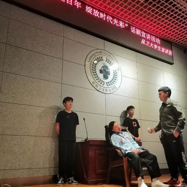 最后由宣讲团的(胡春,苏源,吴鸿运)三位同学带来的话剧表演《白雏振翼,展望未来》作为一名医生,过硬的知识技术是需要,而对生命的敬畏是必要。一名刚毕业的医学生从玩世不恭到主动请缨参加抗疫。这期间他们经历了生死离别,懂得了作为一名医务工作者的神圣职责。