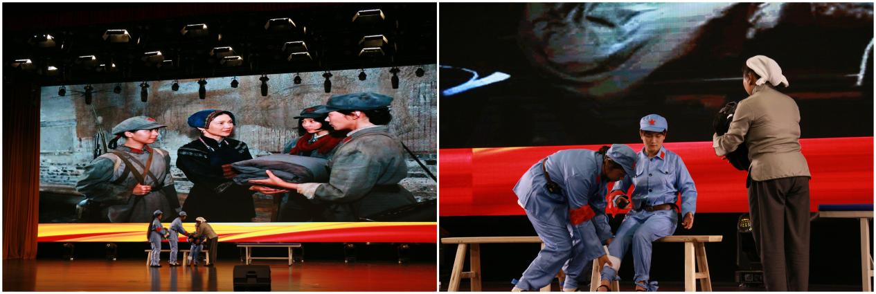“半条被子”是红军长征期间发生的一个小故事,就是这样一个小故事,时隔86年,当我们再次讲述依然让人深深震撼,感动不已。它写满了风雨同舟、血脉相通的爱民情怀,浸润了生死相依、患难与共的鱼水深情,镌刻了在兹念兹,心系百姓的为民初心。最后,全体表演工作人员同唱《歌唱祖国》,难诉拳拳爱国之情,前路漫漫,幸而有无数前人指引,吾辈更当自强!