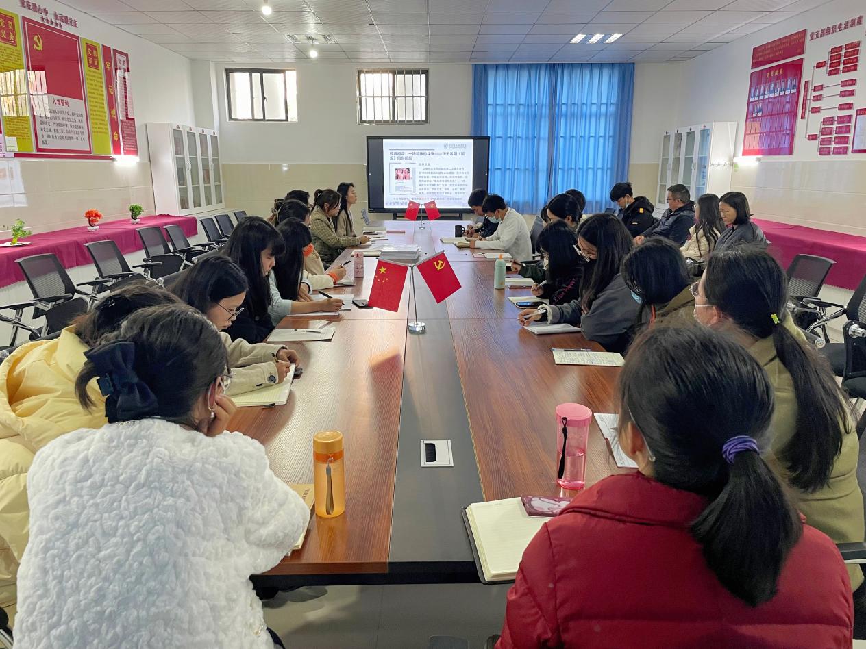 寒假期间,各教师按照假期工作安排,认真精读一本期刊。会上,庄叶、杨兴斌、聂元会三位教师代表结合工作实际,从期刊中领悟的有价值的内容出发,与参会教师们分享阅读心得。庄叶老师假期中阅读期刊《党史博览》,她围绕自身感悟最深刻的文章“一场特殊的斗争——历史名剧《屈原》问世前后”,为大家讲述了思想文化运动对人民群众的影响,并结合思政课程教学,简要谈论思政课程中如何结合故事,引导学生厚植爱国主义情怀;杨兴斌及聂元会老师阅读期刊《求是》,杨老师从正风肃纪、坚定信仰、“补钙”、弘扬革命精神四个方面,结合党的二十大报告,浅谈师德师风建设和坚定理想信念的重要性;聂老师则围绕期刊中“人与自然和谐共生”专题,分别从学习情况、概念和教学点联系、教学方法三个方面,具体讲述了期刊内容与教学知识点的衔接。除寒假阅读外,假期beat365选派杨庆芳、周天娇教师参加云南省高校思政课教师培训,会上,两位教师传达了培训内容,细致地讲述了培训所见所感。