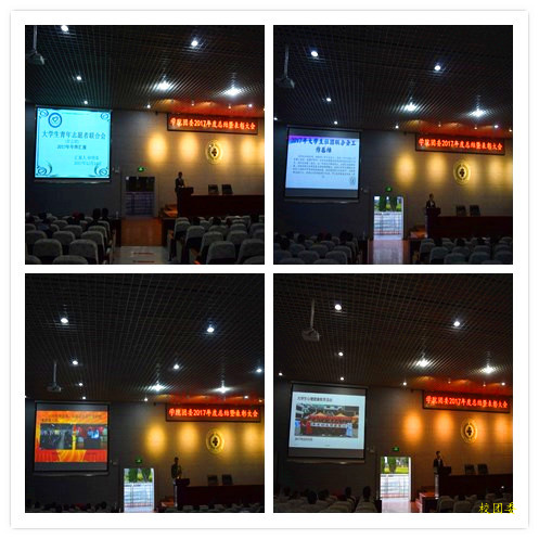 大会第二部分,团委工作总结会。首先是团委、社联、青志联的负责人向大会做工作总结。各分管部门的工作总结中,负责人图文并茂的向大会总结了过去一年本部门所做的具体工作,展示了工作中取得的成就,指出了一些存在的问题,同时也为本部门2018年的工作做出了周密的计划和安排。各部门负责人的总结赢得在场全体学生干部的阵阵掌声。