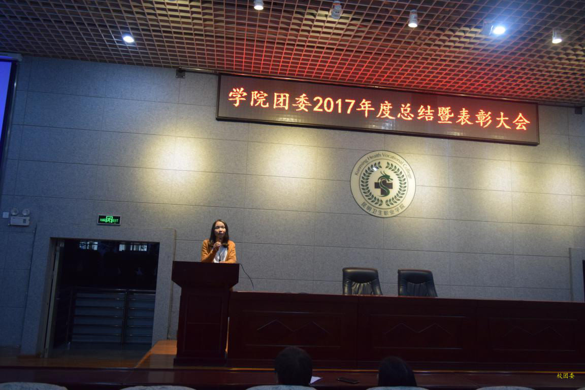 最后,团委书记雷红梅老师代表学院团委向大会做2017年度团委工作总结。总结报告中,雷书记首先肯定了2017年团委下属各部门所取得的成绩,向全体学生干部的辛苦付出表示感谢,向今天受到表彰的先进集体和个人表示祝贺。