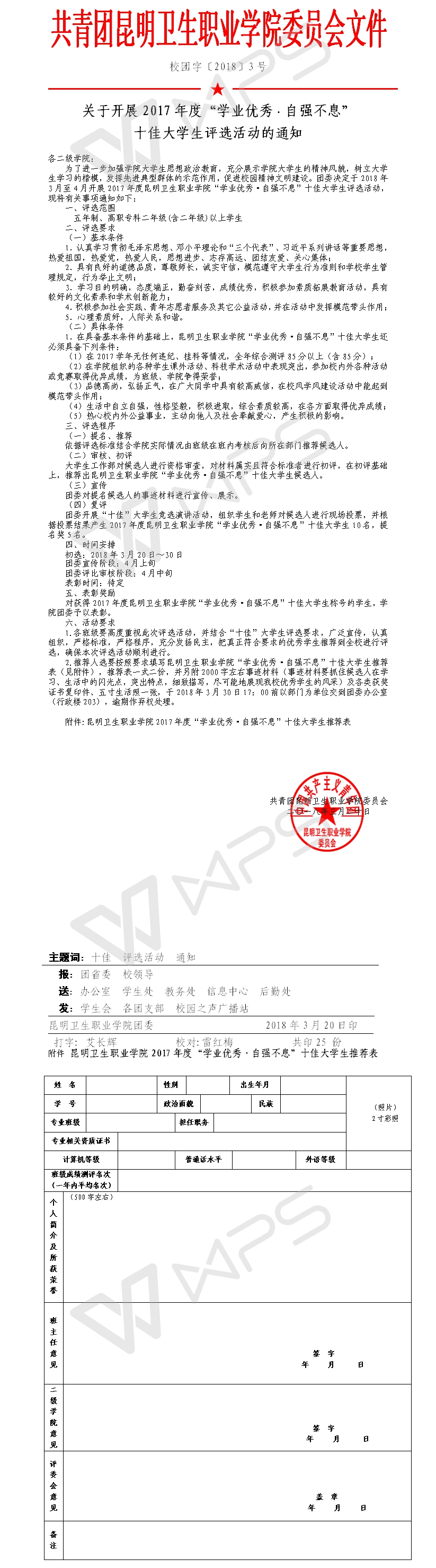 关于开展2017年度“学业优秀·自强不息” 十佳大学生评选活动的通知