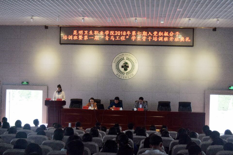 为认真贯彻落实党的十九大、十九届二中、三中全会和习近平新时代中国特色社会主义思想精神,进一步发挥大学生骨干的示范引领作用,学院党委和团委联合举办了第七期入党积极分子暨“青马工程”培训班,参加培训的学员有2018年的入党积极分子和团委学生骨干共计225名师生。培训班开班典礼于2018年4月18日下午在学生报告厅举行,学院党委副书记张晓刚同志,党委委员、宣传统战部部长王斌通知,团委书记雷红梅同志以及学院各党支部书记、委员等领导共同出席了开班典礼,典礼由团委宣传委员董敏同志主持。