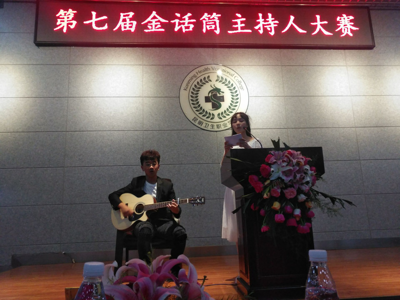 “金话筒”大赛是一个能够锻炼,培养大家的比赛,从一开始的初赛百人竞选,有三十个人一路过五关斩六将冲刺到了复赛,在复赛临时抽主持稿,临时发挥中又以优异的成绩选出15名选手,进入决赛的两人搭档比赛。