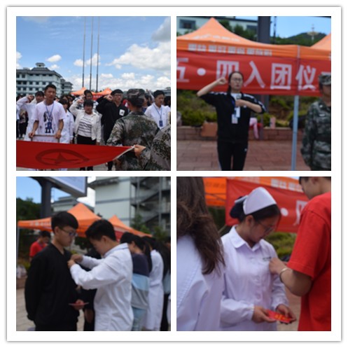 首先,宣誓仪式开始,奏唱《光荣啊,共青团》,出团旗,紧接着主持人宣布了新入团的50名同学名单,并由校团委组织部保虹梅同学带领50名新团员手握拳头,面向鲜红的团旗,进行庄严的入团宣誓,老团员为新团员佩戴团徽仪式。随后由16级五年制影像1班的周志恒同学代表新团员作发言。活动中,一个个朝气蓬勃的面孔,标志着一颗颗努力学习、不断进步的心;一句句铿锵的誓言,坚定了一个个执着为共产主义事业奋斗终身的信念。