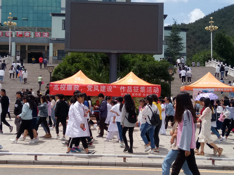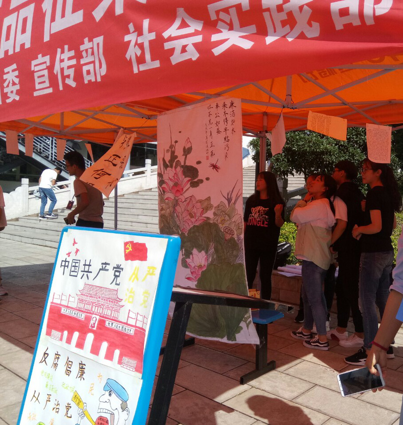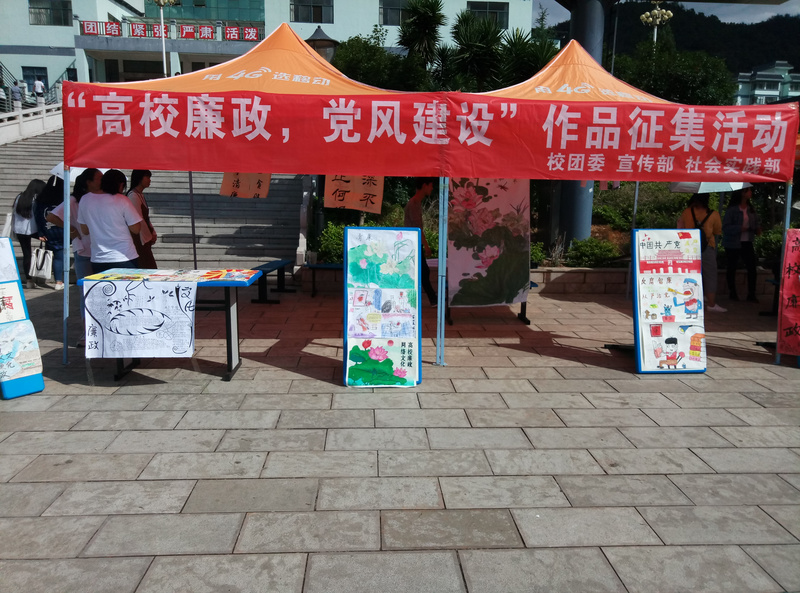 为了让同学更加深入了解“高校廉政,党风建设”beat365平台官方网站校团委宣传部与社会实践部,在beat365平台官方网站大屏幕下举办了“高校廉政文化作品征集”优秀展出的活动。