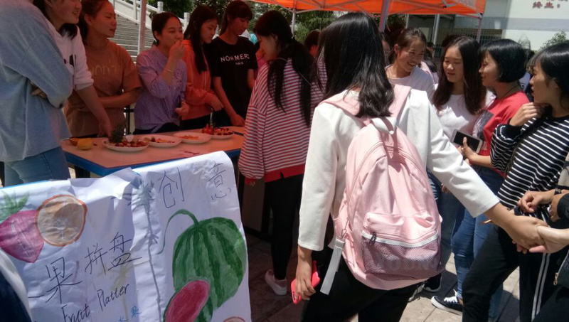 在欢声笑语中,高涨的气氛引来了路过同学的围观,作品逐渐摆出,参赛者们的作品可谓别具一格、各有各的个性与特点。活泼可爱的笑颜水果娃娃、讨人喜爱的俏皮动物、满是水果的水果世界等。让人大饱眼福,展示出独特的作品与风格。