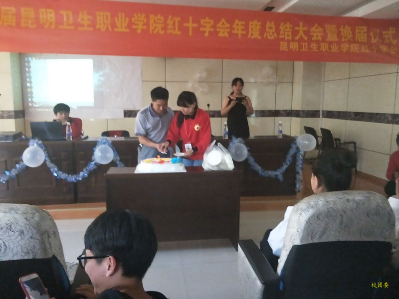大会在工作人员的指导下井然有序的进行着,首先是主持人的开场白,然后由区红十字会的张学斌老师代表讲话。针对这一年的学生会工作做了简单的总结,并发表了对红会工作的感触和对今后工作的希望。老师还对今后红会工作提出要求,希望红会带领各部把日常工作系统化、模块化、把各类活动分类,以提高工作效率,希望每位成员增强团队意识,加强自我学习,积极参加活动,加强红会管理制度,要求我们各部门总体合作。第二项议程是秘书长对这一年的工作进行总结。第三项大会议程是欣赏红十字会一年来的活动视频,记录着我们这一年来成长的点点滴滴,动人心扉。第四项活动议程是,老师、秘书长为红十字会的成员颁发聘书。第五项活动议程,庆祝换届仪式。
