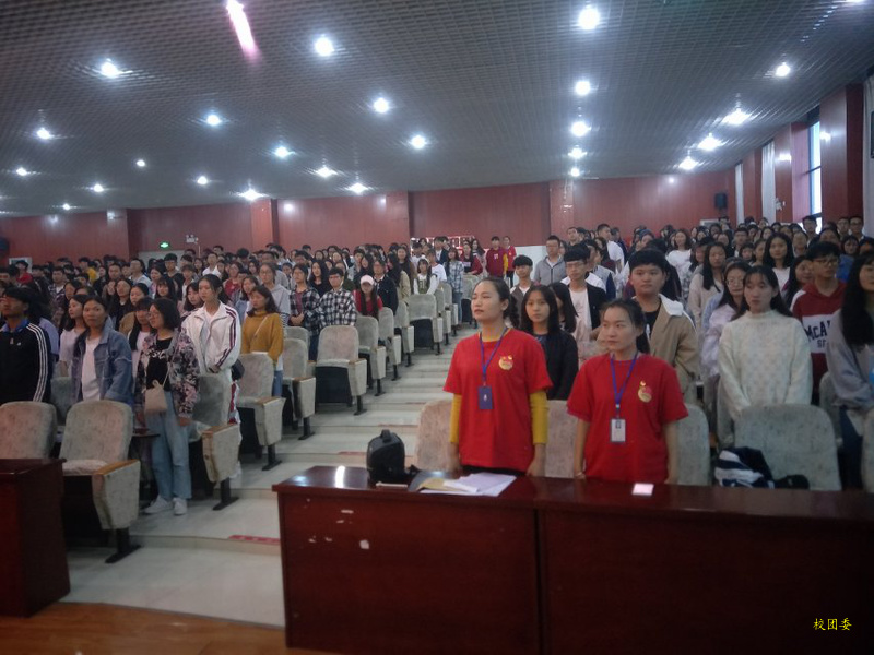 首先,由主持人宣布大会开始并介绍莅临本次大会的各位老师及参会人员,完毕则全体人员起立并奏国歌。参会人员在庄严肃穆的团歌声中都严阵以待,意气风发!
