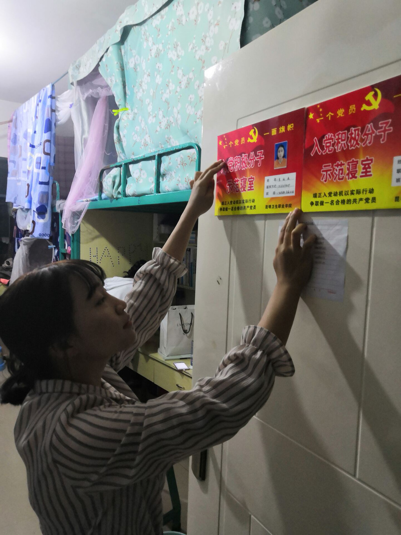 对入党积极分子的寝室实行挂牌制度,旨在于让党员在成为学习榜样的同时也接受学生的监督。把学生党员的先锋模范作用引入学生宿舍的管理工作中去,积极开展以“关心学生宿舍工作,主动参与学生宿舍管理,争创文明寝室为主题的创先争优活动,充分发挥学生党员的先锋模范作用,将榜样的力量向学生宿舍延伸,努力创建更加和谐美好的校园。后期,支部将会对入党积极分子的寝室进行不定期抽查,督促入党积极分子规范宿舍卫生,发挥模范带头作用。