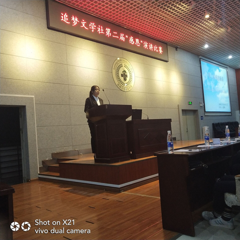 为了能让全校学生都学会知恩、感恩、报恩。让每位学生都怀着一颗感恩的心,去感恩父母、感恩老师、感恩同学、感恩学校、感恩社会。营造一种感恩。beat365平台官方网站追梦文学社于2018年11月5日下午18点30分在beat365学术报告厅举行了以“感恩老师、感恩同学、感恩学校、感恩社会”为主题的演讲比赛决赛。共有11名选手从近30人的初赛中脱颖而出,进入了这次决赛。随着主持人精彩的开场白之后,一场激烈的比赛并开始了。