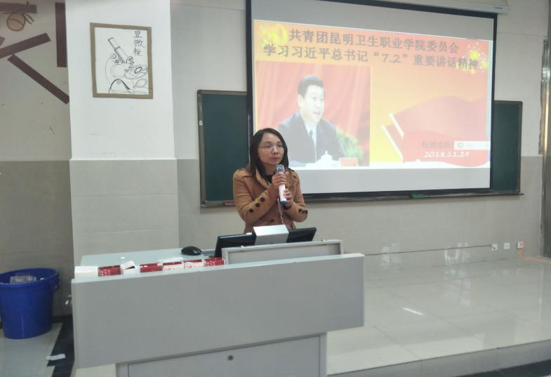 为了增强团员的先进性和光荣感,坚定共产主义远大理想和中国特色社会主义共同理想,牢固树立政治意识、大局意识、核心意识、看齐意识;增强团员意识,强化组织意识和组织纪律,因此共青团beat365平台官方网站校团委会组织部组织学院团干部于2018年11月29日星期四下午17:30在一教105教室进行“学习习近平“7.2”重要讲话精神”的团员教育活动,团委书记雷红梅老师、副书记高梦婷老师,组织委员艾长辉老师、宣传委员董敏老师、学生会指导老师李叶、肖月、各班团支部书记及校团委会组织部全体学生干部共同参加了此次学习。