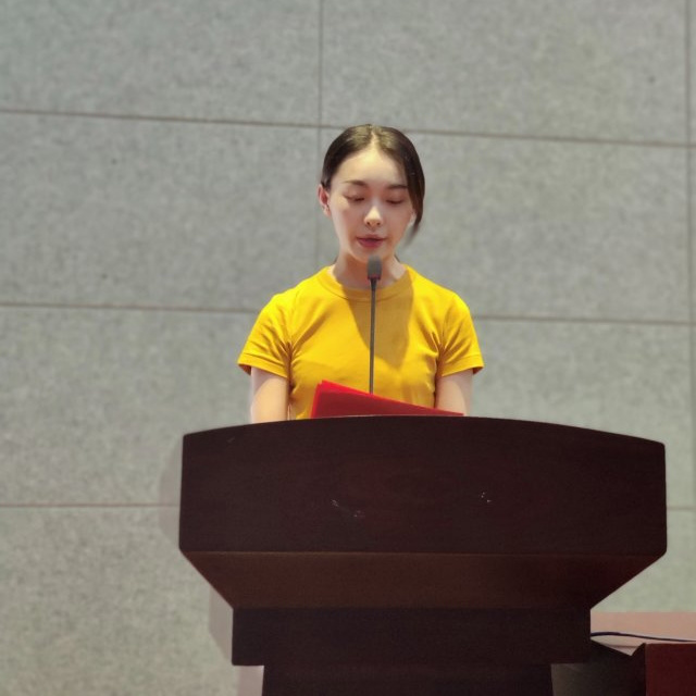 大会进入主要环节:团委办公室副主任李叶老师宣读团委第九届团委学生干部名单,第九届团委学生干部与第八届团委干部见面,各位新老干部代表纷纷上台与大家见面告别。最后由学院党群工作部副部长李睿雯老师为本次大会致辞,她再次强调共青团是中国共产党的助手和后备军,要不断提思想道德素质和科学文化素质。