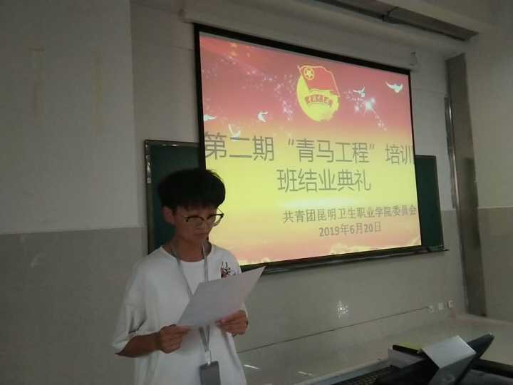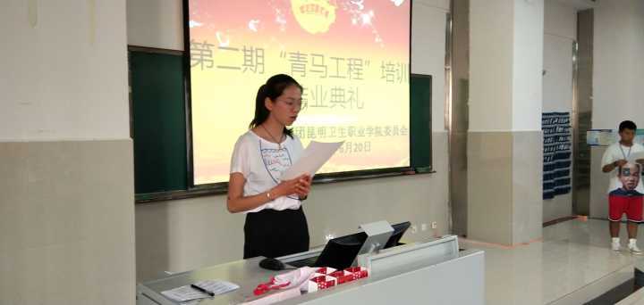 团歌奏唱完毕后,团委办公室主任董敏老师为第二期青马工程结业仪式致辞。董主任向青马班结业的学员表示祝贺!其次,董主任指出,此次只是学习过程的一小点,并不是学习的终点。大学生骨干要有担当、有奉献精神和责任意识,培训班结束回到各自学生组织后,要将在培训班所学带到同学当中去,要将培训班的精神传承下去,为beat365学生工作和人才培养做出更大贡献。她对所有学员表达了殷切的期望,希望各学员能够持之以恒,朝着成为优秀的青年马克思主义者而不懈奋斗。