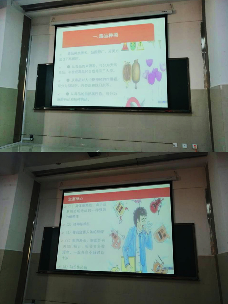 在团委办公室同学的带领下学习了毒品知识、毒品的危害和如何拒绝毒品,他们运用PPT课件为同学们讲授毒品相关知识,向同学们展示毒品模型,帮助大家认识新型毒品,了解毒品的危害;学会拒绝毒品,增强自我保护和防范新型毒品的意识,取得了良好的宣传效果。