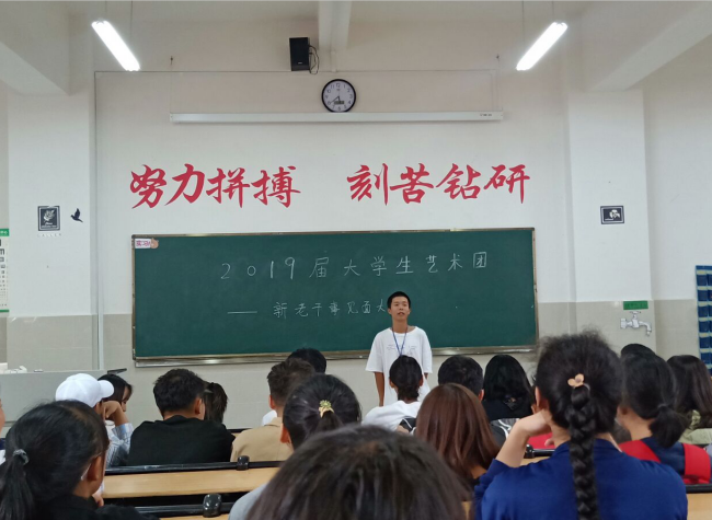 秋风送爽,金桂飘香。随着新学季的开始,大学生艺术团已经进入了一批新的鲜血,为了促进新老成员之间的交流与沟通,让艺术团的各项工作顺利进行,大学生艺术团于2019年9月17日下午17:30在一教201举行了“2019届新老成员见面大会”全体艺术团新老成员参加此次会议。