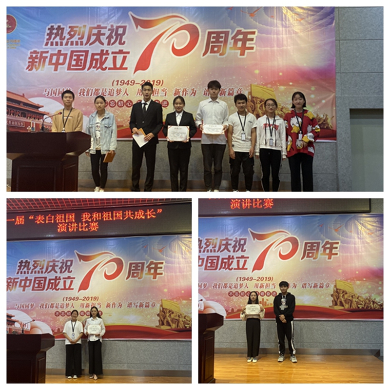 进入决赛的十二位参赛选手们以《我为祖国点赞》、《祖国在我心中》、《我的国我的家》等为演讲题目。比赛中12位优秀演讲者登台展示时代新人风采,讲述自己与祖国共成长的故事。 选手们精彩的演讲,让同学们耳目一新,也博得了学生的一阵阵热烈的掌声。我们胸怀祖国,壮志凌云,我们不怕风浪,争做蓝天雄鹰。大家把自己的梦想和祖国的强盛、社会的发展,人民的幸福紧紧的联系在一起,表达了自己的爱国热情。