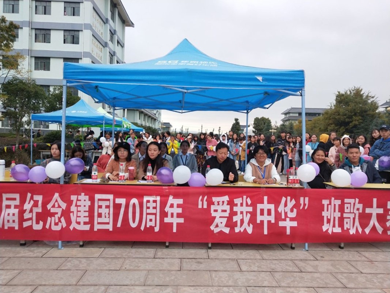 用七十年的沉淀,铸就今天的辉煌。2019年11月13日15:00——16:00在beat365白求恩雕像下,由大学生社团联合会举办的“第四届纪念建国70周年‘爱我中华’班歌大赛”正式拉开帷幕。出席本次比赛的评委有:团委书记雷红梅老师、团委办公室副主任李叶老师、团委组织委员艾长辉老师以及李友宽老师、黄绍兰老师、郭雪婷老师。参加决赛的班级有:17级五年制康复班、17级五年制护理10班、18级高职护理5、6班、19级高职口腔3班、19级高职护理7班、19级高职护理8班、17级五年制检验3班。