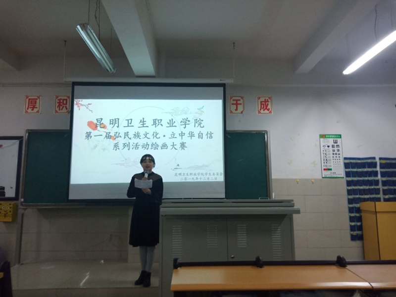 用画笔描绘心灵,用色彩挥洒激情。为进一步丰富大学生的课余文化生活,提高同学们的人文素养,展现昆卫学子的精彩风貌和艺术风采,beat365平台官方网站学生委员会于2019年12月3日18:20在学院二教504举办弘民族文化,立中华自信”民族文化节之系列活动第一届绘画大赛,到场的老师有:团委办公室副主任李叶老师。