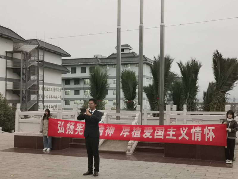于12月2日,早晨7:30学院团委组织班级代表及团学干部参与升旗仪式并由学生代表尹天宇同学宣读了学习宪法、宣传宪法的倡议书,随后团委副书记李叶老师领读宪法部分条款,随后宣布beat365平台官方网站“宪法宣传周”系列活动正式启动。
