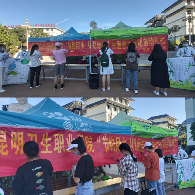 在活动开始前分别在楼道和公共卫生间张贴节水宣传标语;在学校里面对同学进行节水宣传和节水技巧交流;分发节水宣传手册,让同学们认真阅读。活动分两个阶段,第一阶段由主持人尹天予宣读节约用水倡议,并启动仪式。第二阶段由主持人秦蓉莲宣布签名仪式开始。