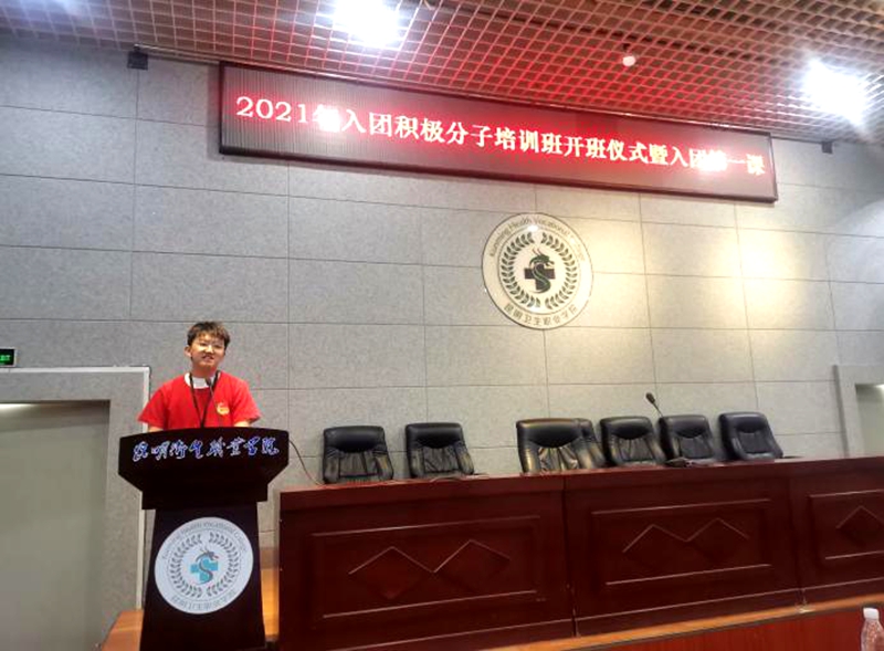 本次活动共分为三个议程,第一项议程:主持人宣布2021年入团积极分子培训开班典礼正式开始,全体起立,奏唱团歌。
