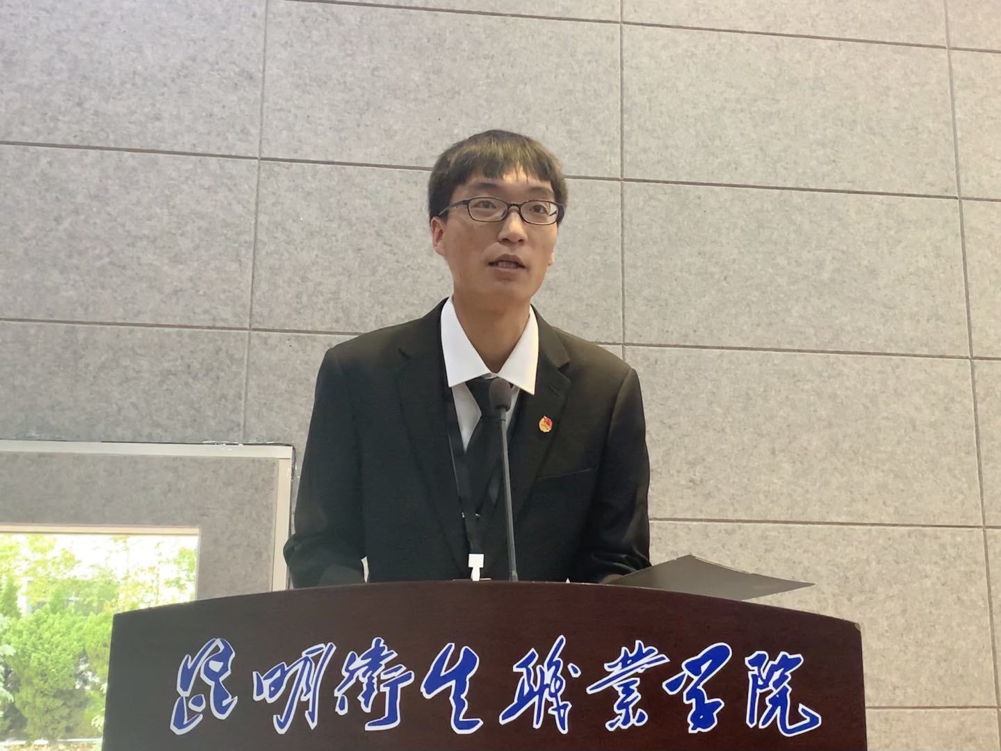 交接仪式结束后,新干部上台进行了个人介绍,其中新干部代表邹济锴作出发言,表示将带领新一任学生干部努力完成团委的工作,他们坚定的眼神中带着期许,他们将接替部门各项工作,做好“撸起袖子加油干”准备。