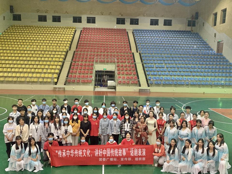 为加强大学生对中华传统文化的认同感,增强民族精神的感召力和亲情的凝聚力,做到文化自信。2021年9月24日19:30共青团beat365平台官方网站委员会主办,团委宣传部、团委广播站、团委组织部承办“传承中华传统文化,讲好中国传统故事”话剧表演活动于体育馆隆重举行。
