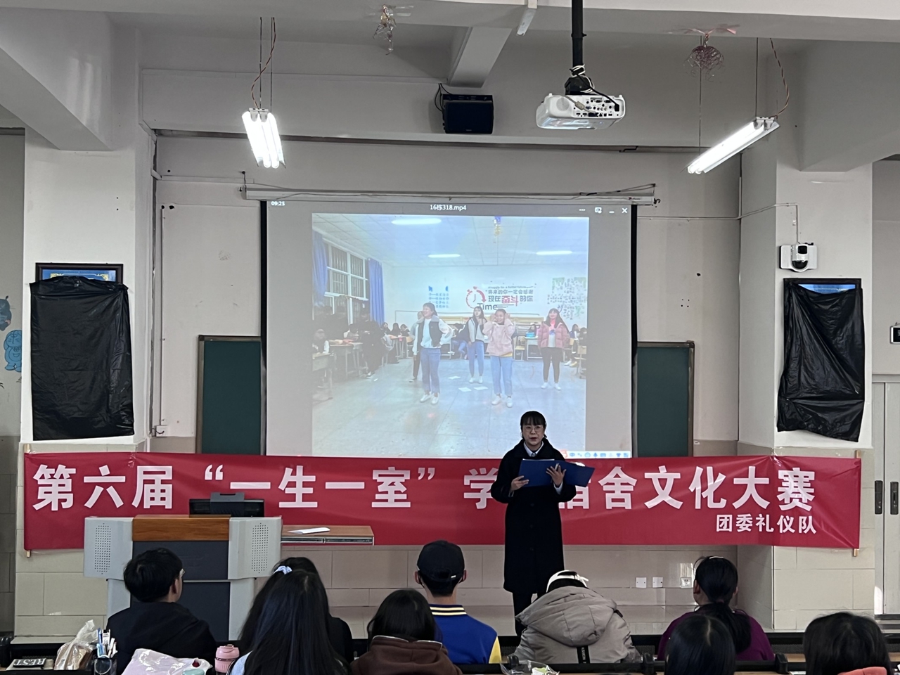 整洁的寝室环境,别具特色的寝室艺术长廊,将整体提高我们健康文化、积极向.上的寝室文化;对于规范学生行为,形成良好的学习、生活习习有重大的作用,为营造"团结奋进、高雅文明、和谐健康、温暖舒适”的寝室环境;对于促进良好学风形成,保证学生文化生活、健康成堡都有着重要意义。特此,团委礼仪队于11月18日举办第六届“一-生一室”学生宿舍文化大赛。
