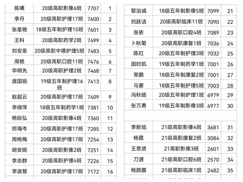 本次评选采取个人自愿报名、公平公开的方式进行评选;由团委组织部成员统计参选总人数,取其中百分之十的人数授予“学习之星”容易称号。截止至2022年3月14日总计参选人员408人;获奖人员40名,考虑到新、老生分数悬殊过大,特设其中18级五年制、19级五年制及20级高职、20级五年制占获奖名额四分之三,21级新生占获奖名额的四分之一。其中20级高职影像6班陈曦同学,学习积分达到7707分。通过本次表彰,有效的激励了学院青年大学生参与“青年大学习”网上主题团课的积极性,我们坚信参与青年大学习的青年人数将会越来越多,学习到的新思想将会指引我们前进。