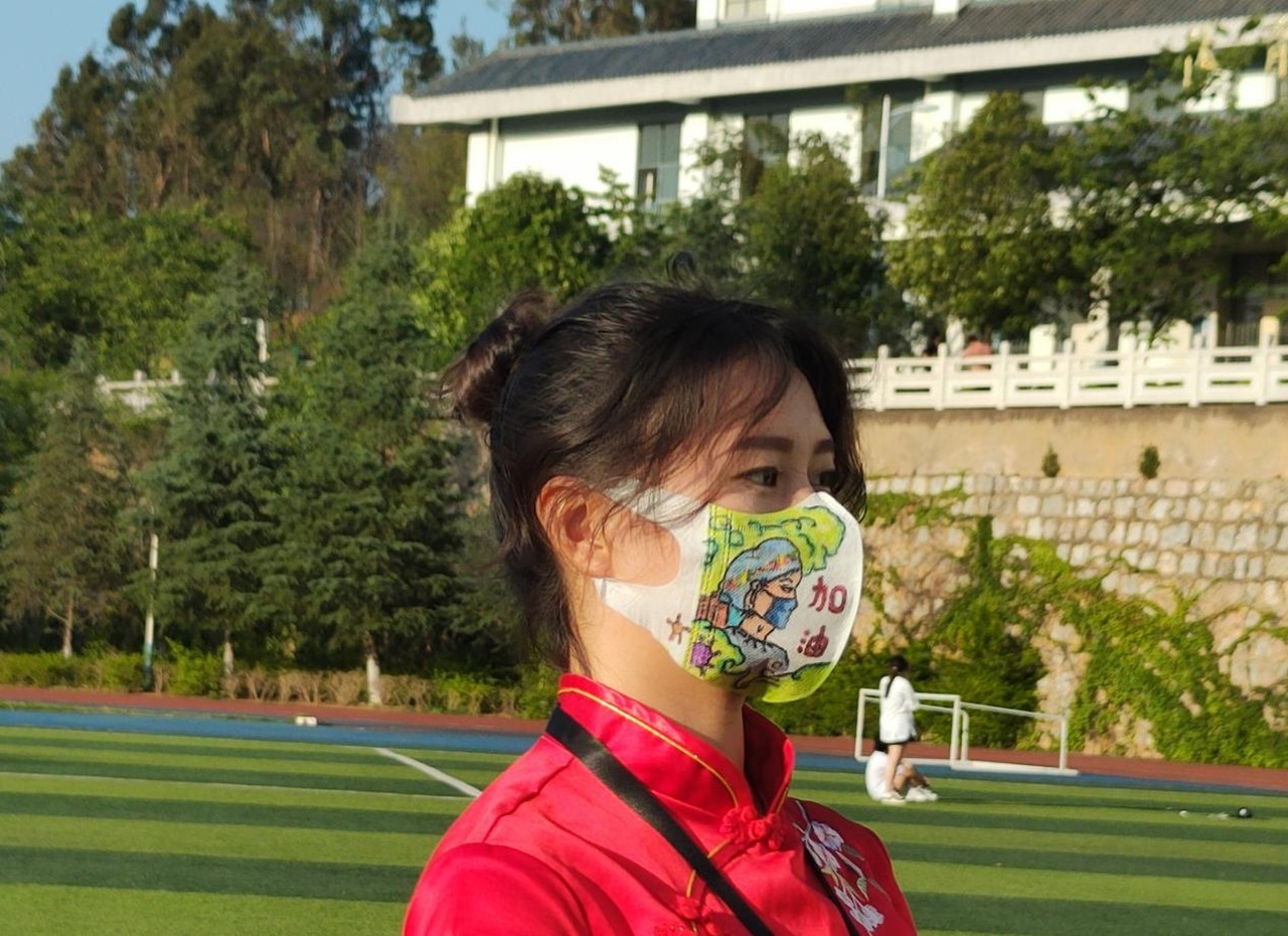 创意说明:这幅画历时三小时,时间并不长,但却表达了我内心的期盼:我们原本都是普通的凡人,在与自然一起不断经历春、夏、秋、冬。19年的疫情爆发,我们走出自己的安全区,为百姓穿上防护服 , 共同抗疫,这面口罩的意义便是“我们在国家有难时,身为中华儿女,应尽我们绵薄之力,待病毒消失的那一天,病毒是黑暗的,而我们可以一直光明……”待世界春暖花开 ,盼光明驱赶黑暗!