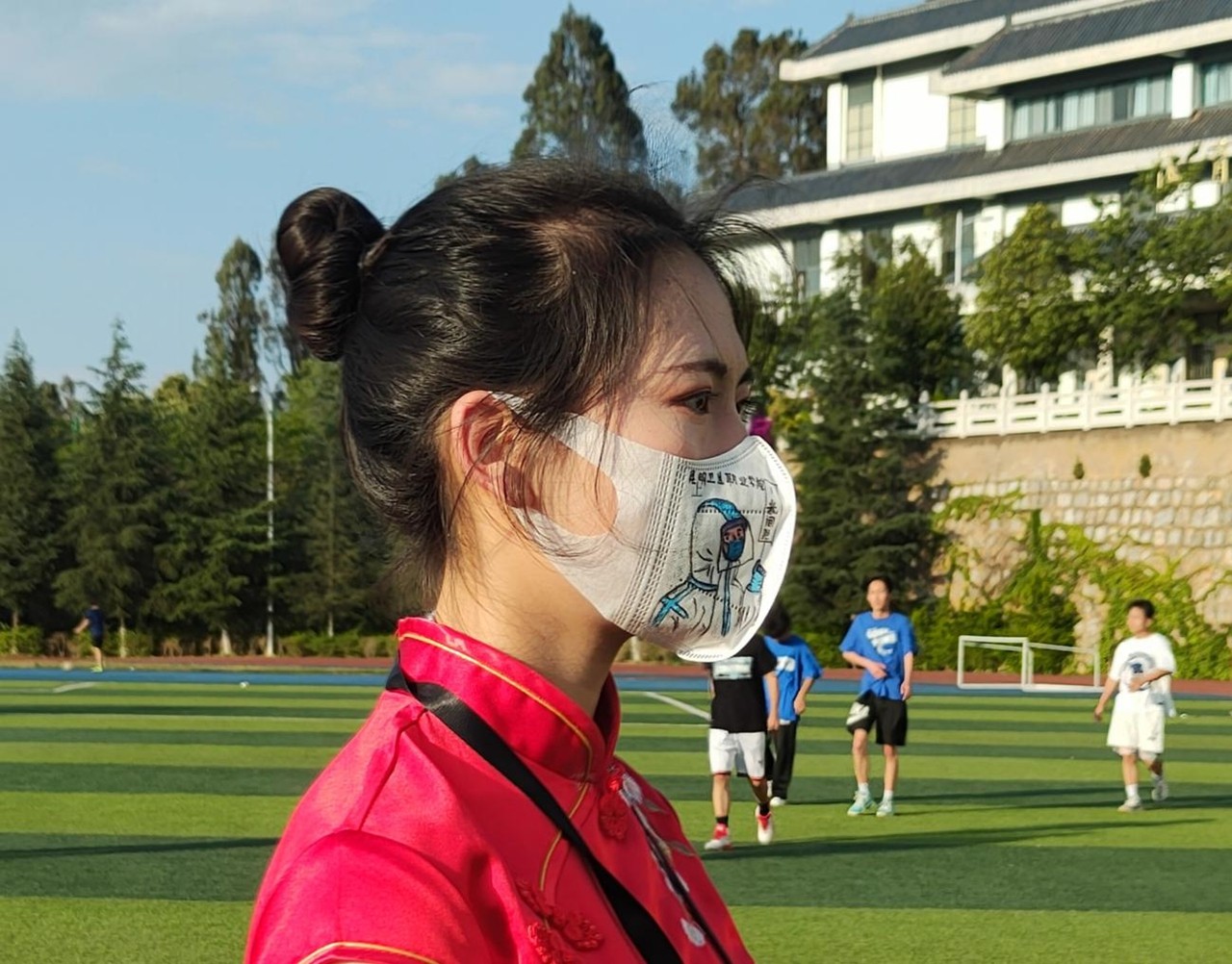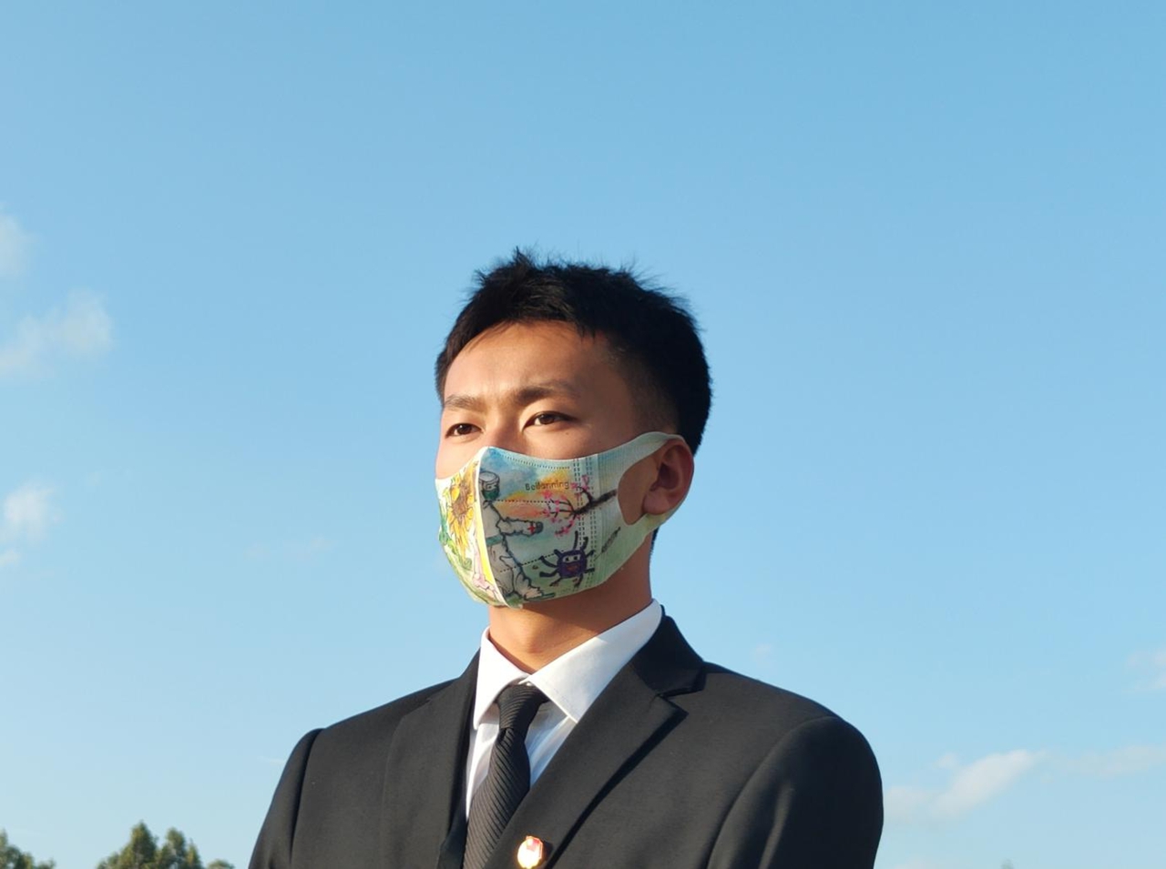 创意说明:后来啊,口罩再也不是我自卑的创可贴,而是历史的尘埃,口罩上走上角有一枝花,花的后方是太阳天空中有白云朵朵病毒被防疫战士消灭,人间处处开满了花朵。他们说疫情偷走了我们这一代人的长征。有的人身穿白衣,心有锦缎。面对疫情选择逆行,星火驰援一线,他们的岗位永不调换,足迹却遍布四方,他们的两鬓有一天会斑白,青春却百年不衰。让我们记住他们,记住这群最美的逆行英雄们。待疫散花开,春和景明。我们摘下口罩,微笑相见。