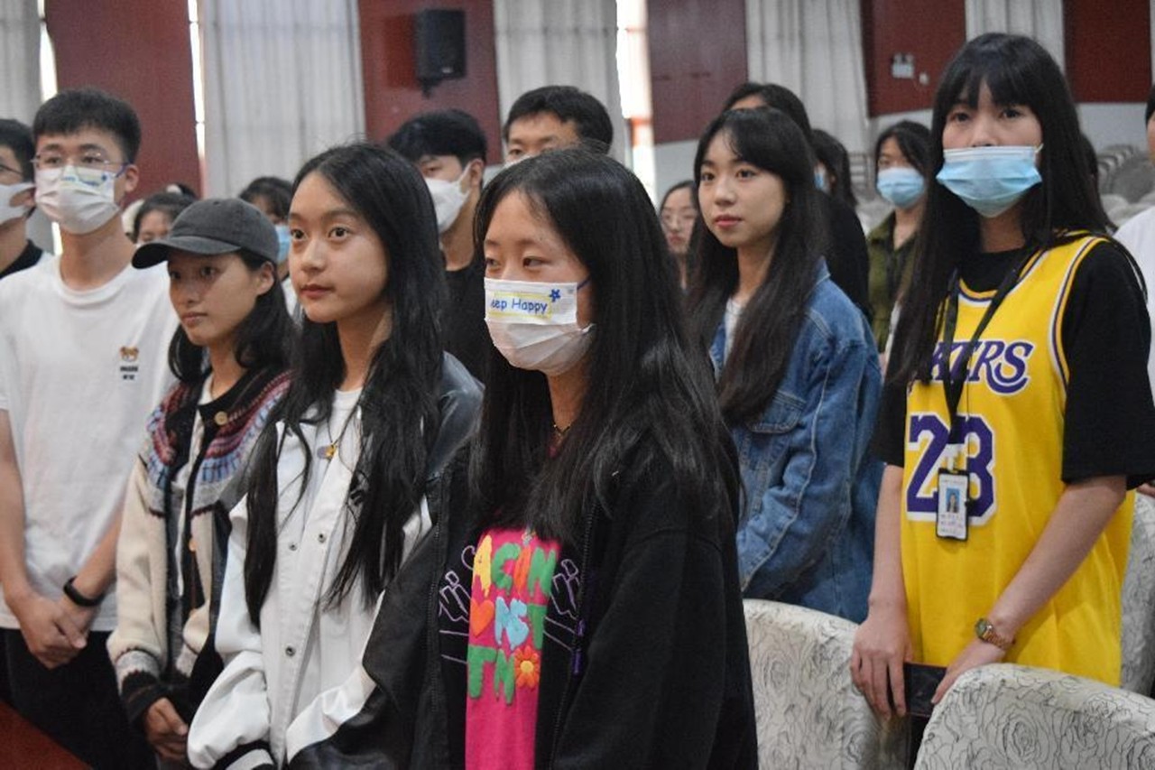 (学院团团一起观看送别视频)