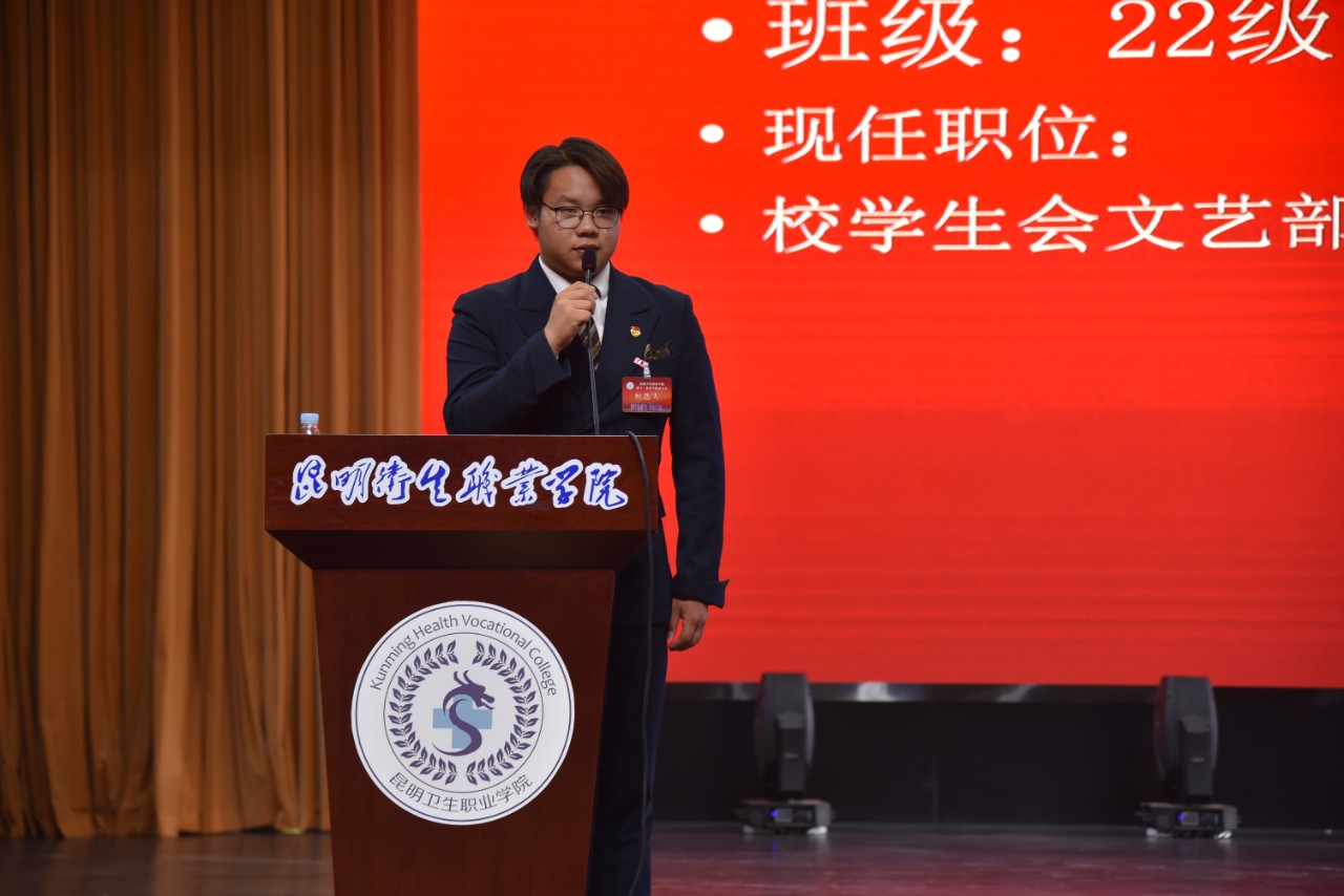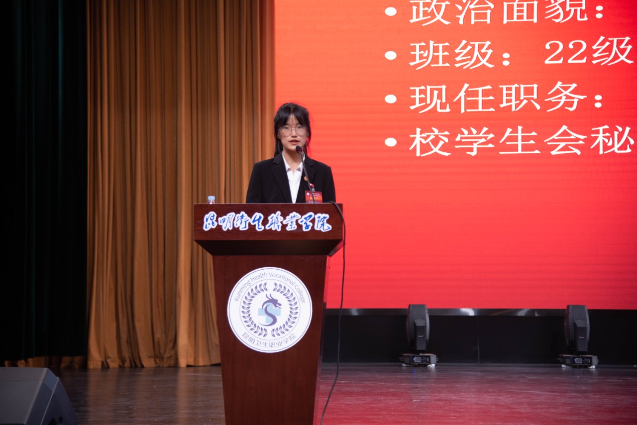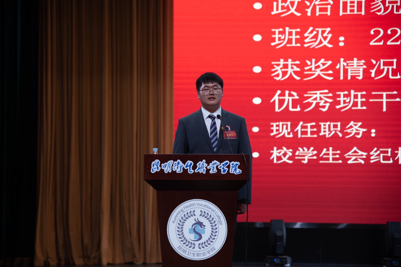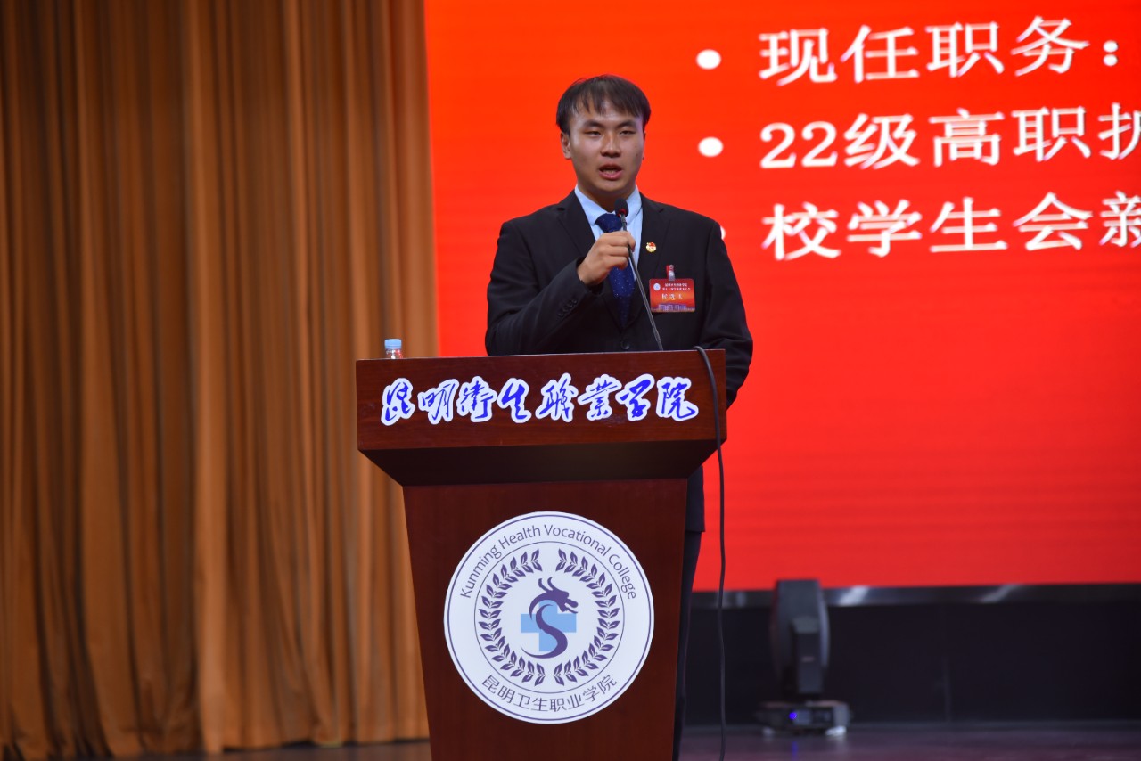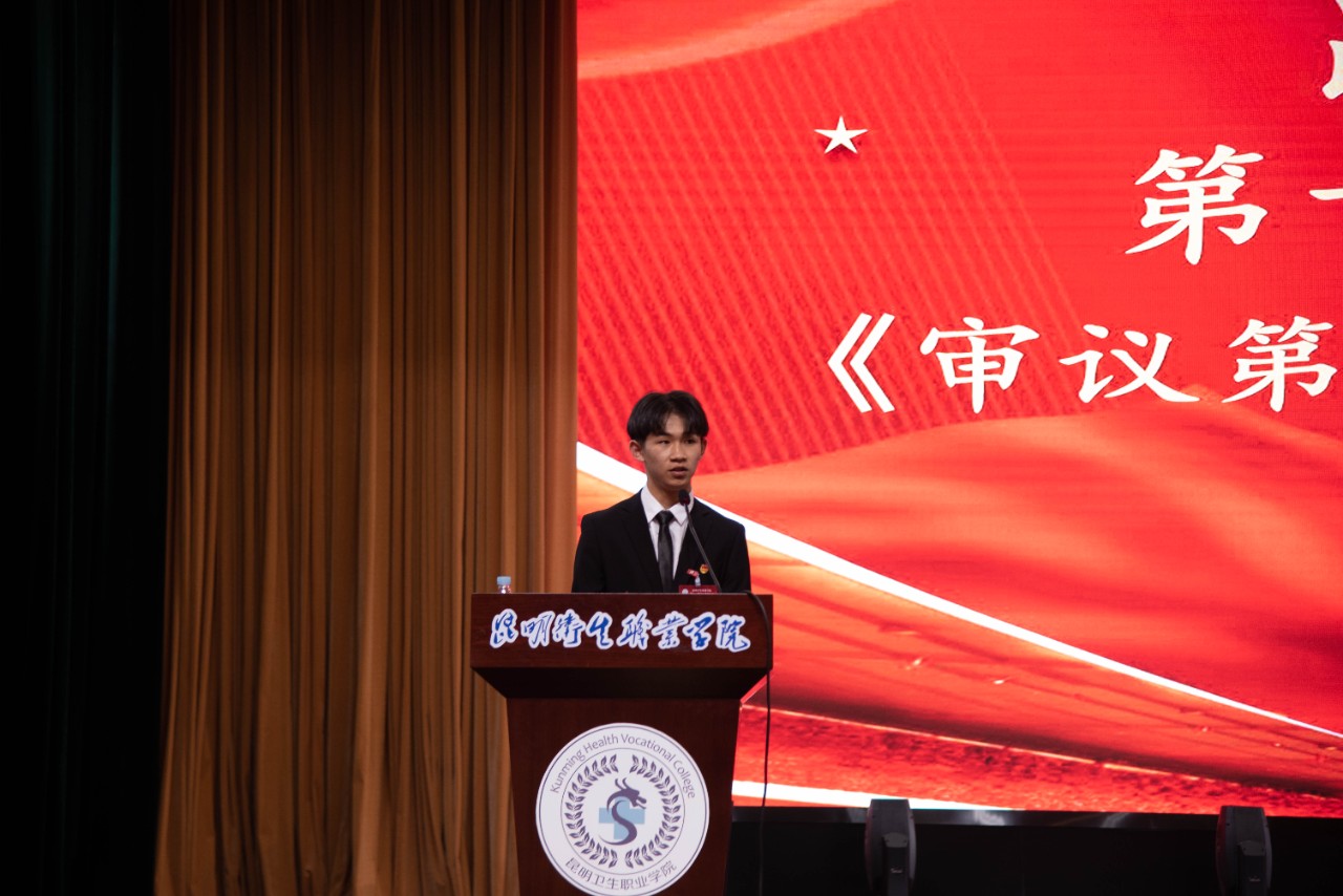 主席团执行主席侯文恒做第十二届学生会委员会工作报告。