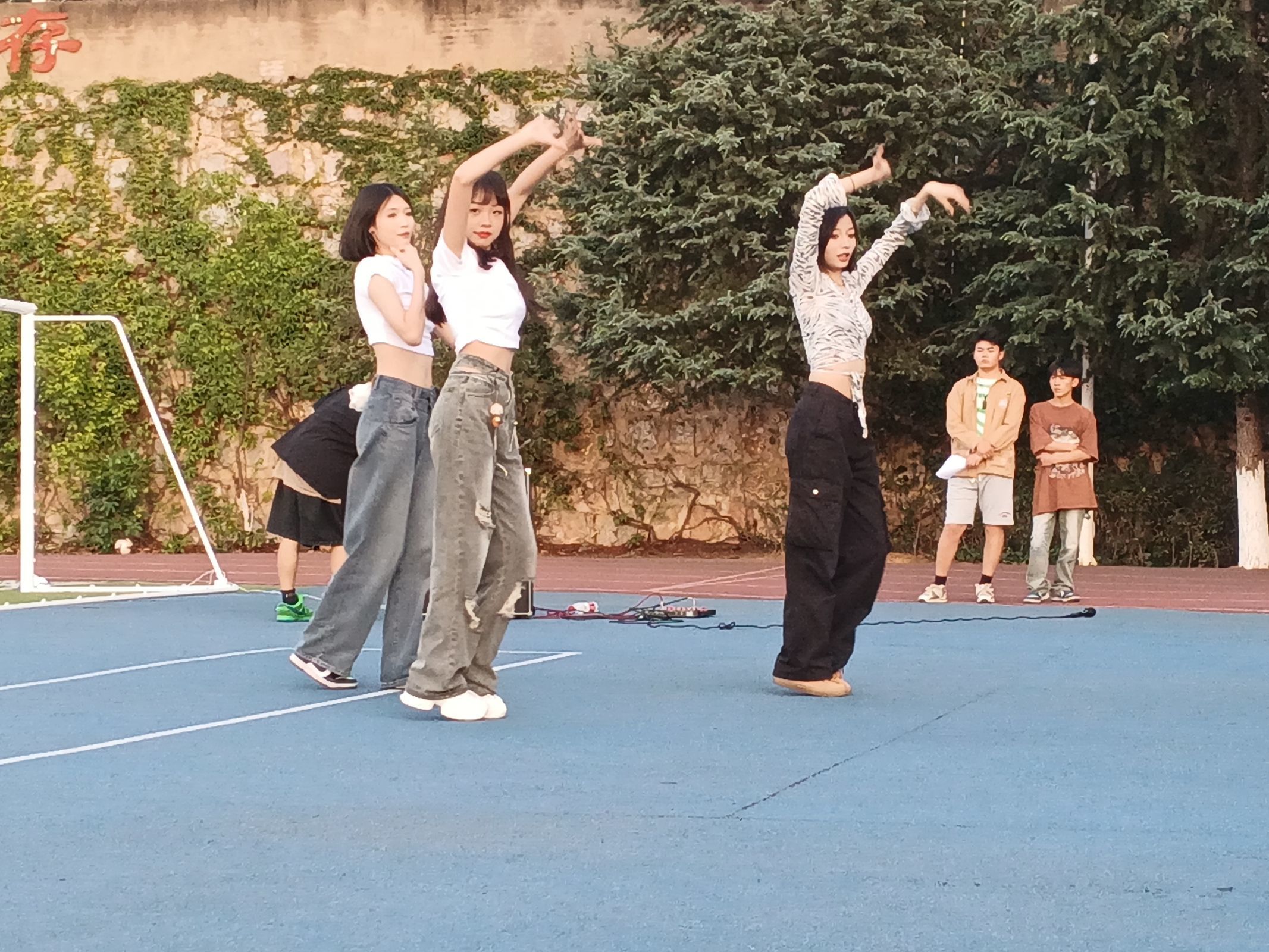 一曲《you&me》开启了本次随机舞蹈活动,活力四射的舞蹈立刻嗨翻全场,迎来了阵阵喝彩。一首首热门曲目不断呈现,动感的、抒情的、优雅的,各种风格的舞蹈把观众带入了一个充满魅力的舞蹈世界,越来越多的同学被吸引到舞台周边并加入到我们当中来和我们一起,一阵又一阵的掌声和呼喊声在操场上响起,这里是竞技的舞台,也是欢乐的海洋 。接下来插入了freestyle, 同学们以卡点形式给大家呈现了不一样的舞蹈 ,有同学用自己的鞋子作为道具给大家展现了不一样的舞蹈。在这样欢快的旋律中和有趣氛围中,舞者们动作舒展自如,自信且大方,充分展现了艺术团成员们的朝气蓬勃,开朗快乐,积极向上的精神面貌。校园随机舞蹈的开展同时也丰富了校园的文化生活,成为beat365独特优美的风景。