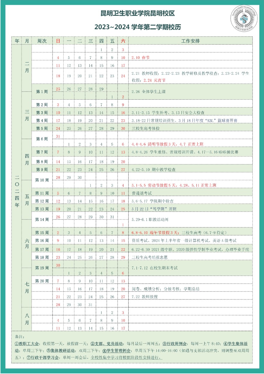 beat365平台官方网站昆明校区2023~2024学年第二学期校历