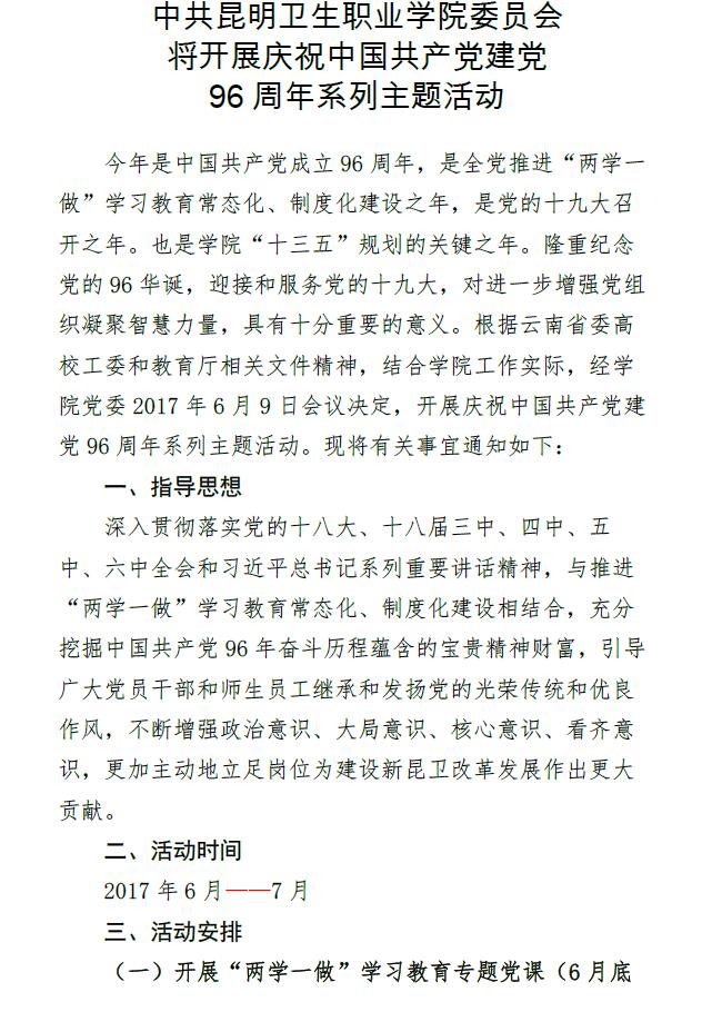 中共beat365平台官方网站委员会将开展庆祝中国共产党建党96周年系列主题活动
