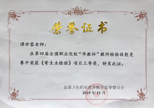 谭世蓉老师荣获寄生虫检验项目三等奖