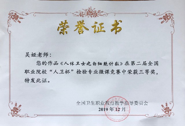 吴娅老师荣获微课比赛三等奖