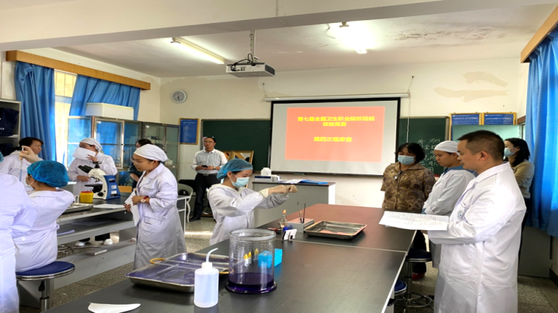 2020年10月17日,由全国职业教育教学指导委员会医学检验技术分委会、中国医院协会临床检验专业委员会主办,四川康复职业学院、人民卫生出版社和重庆华教科技有限公司承办的第七届全国职业院校"人卫杯"检验技能竞赛暨第二届"华教杯"形态学在线大赛在四川省自贡市四川康复职业学院拉开帷幕,来自全国各地中职组13支,高职组37支,本科组2支共52支代表队参赛,大赛设中职组、高职组和本科组。在为期三天的竞赛中,中职组选手们将以手工法操作形式,对细菌检验(革兰染色法及细菌鉴定思路)、白细胞计数及临床运用、总蛋白测定及临床运用进行抽签比赛,形态学检验在线竞赛作为必赛项目。