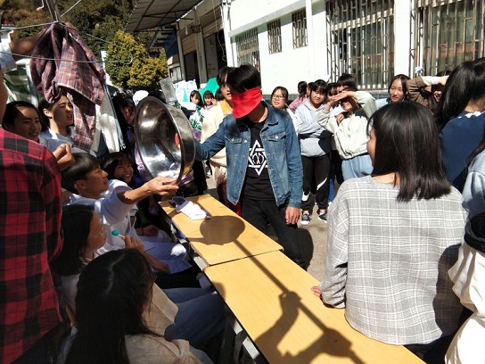 2018年11月20日下午的篮球场上回荡着欢声笑语,不少刚下课的同学驻足在这里,到底是什么吸引了他们,原来是“狂欢宴,喜游园”的主题游园会在这里举行,本次游园活动由校团委的11个社团负责,全校学子积极参与。妙趣横生的活动,让无数同学童心开始翻滚,一个接一个的精彩小游戏带我们回味可爱难忘的童年时光。
